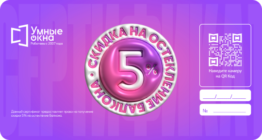 Дополнительная скидка в размере 5000 рублей на заказ окон. Можно получить в качестве «секретного приза» от замерщика.
